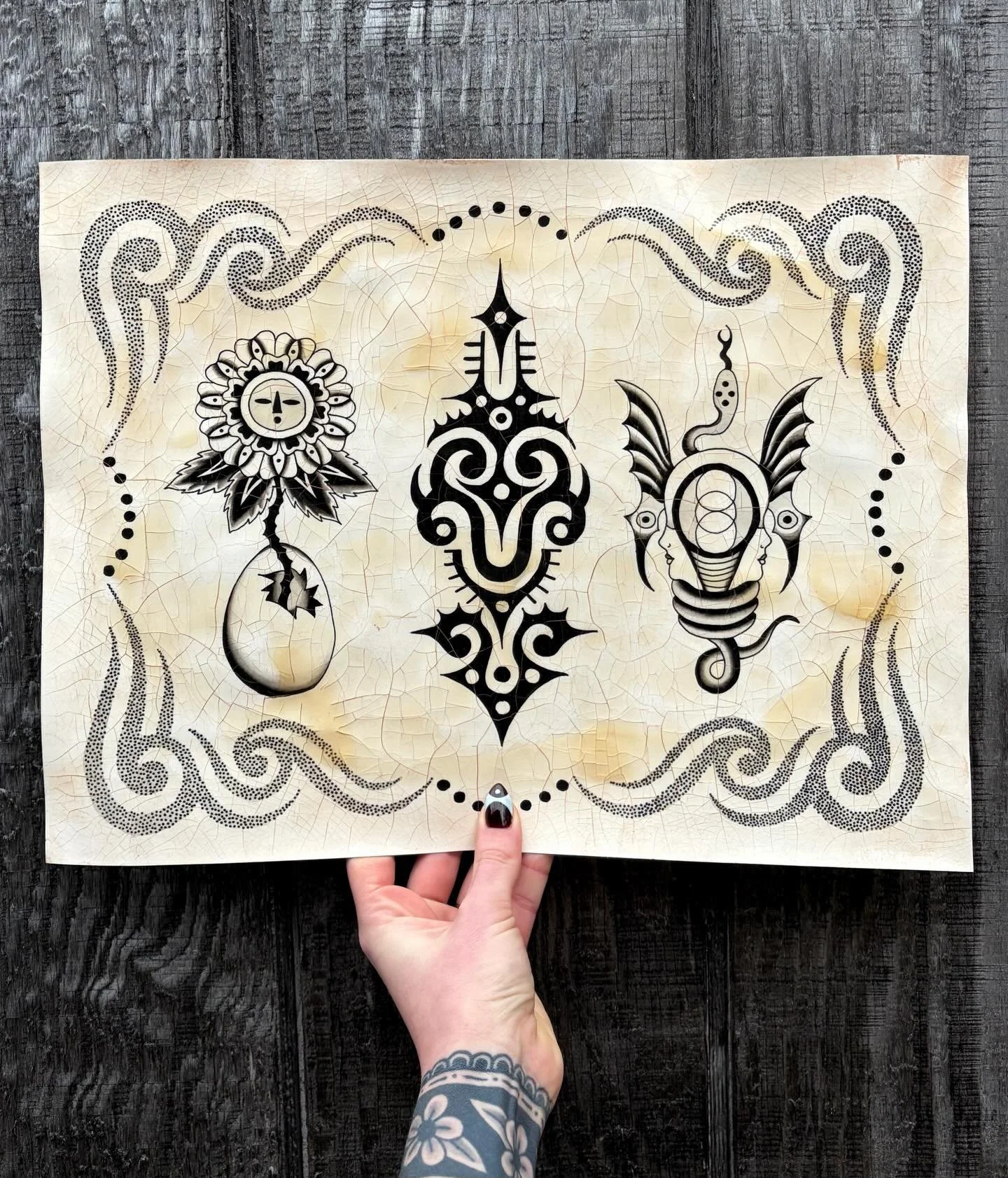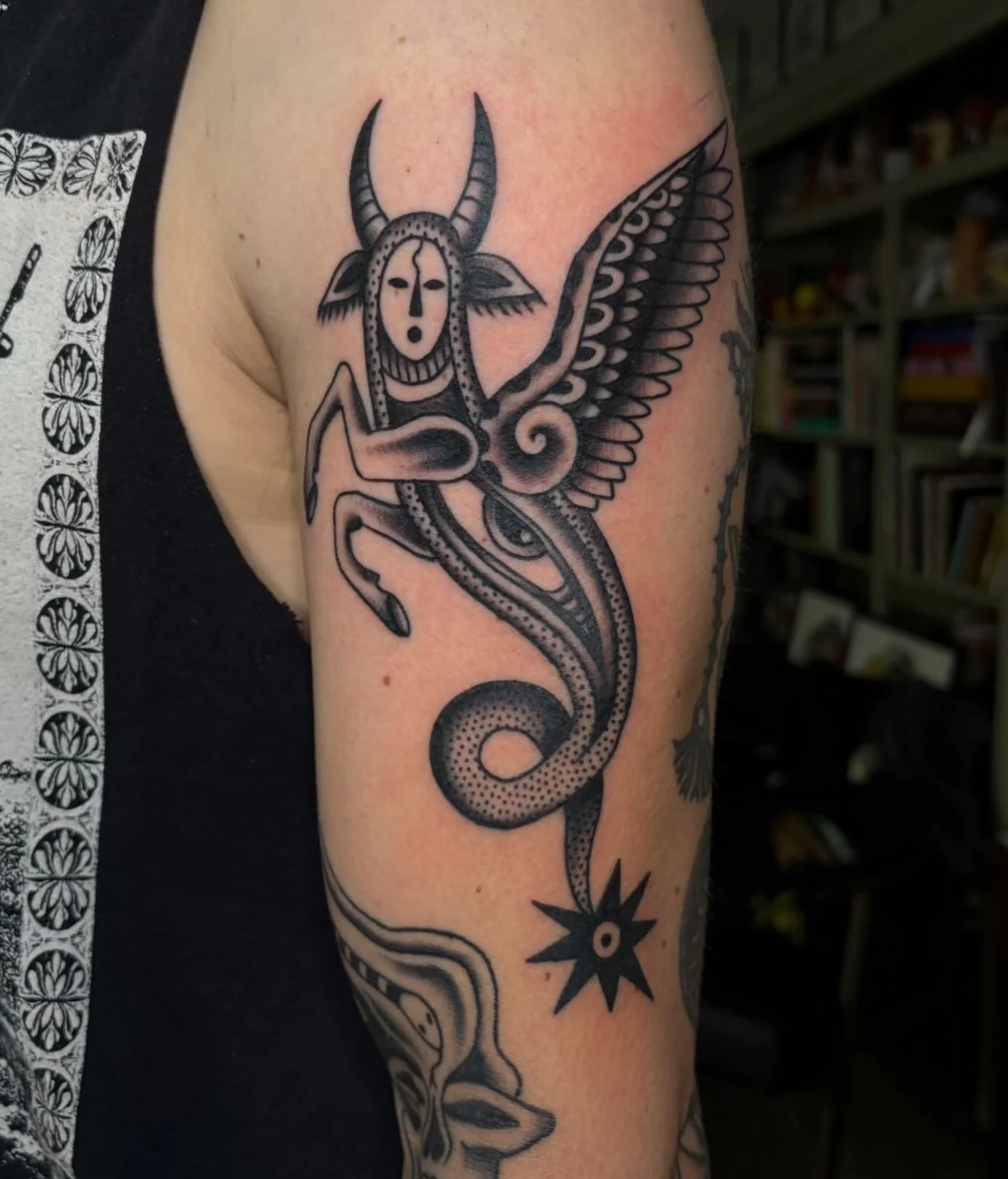 Now in her third year of tattooing, Becky specializes in big bold compositions encompassing a traditional and vintage feel. She is inspired mostly by her travels, but loves to honor the world of kitsch and camp in which she lives. Becky loves working from vintage illustrations, primitive adornment, and you can often find her sourcing inspiration from the antique stores and flea markets she so regularly visits.